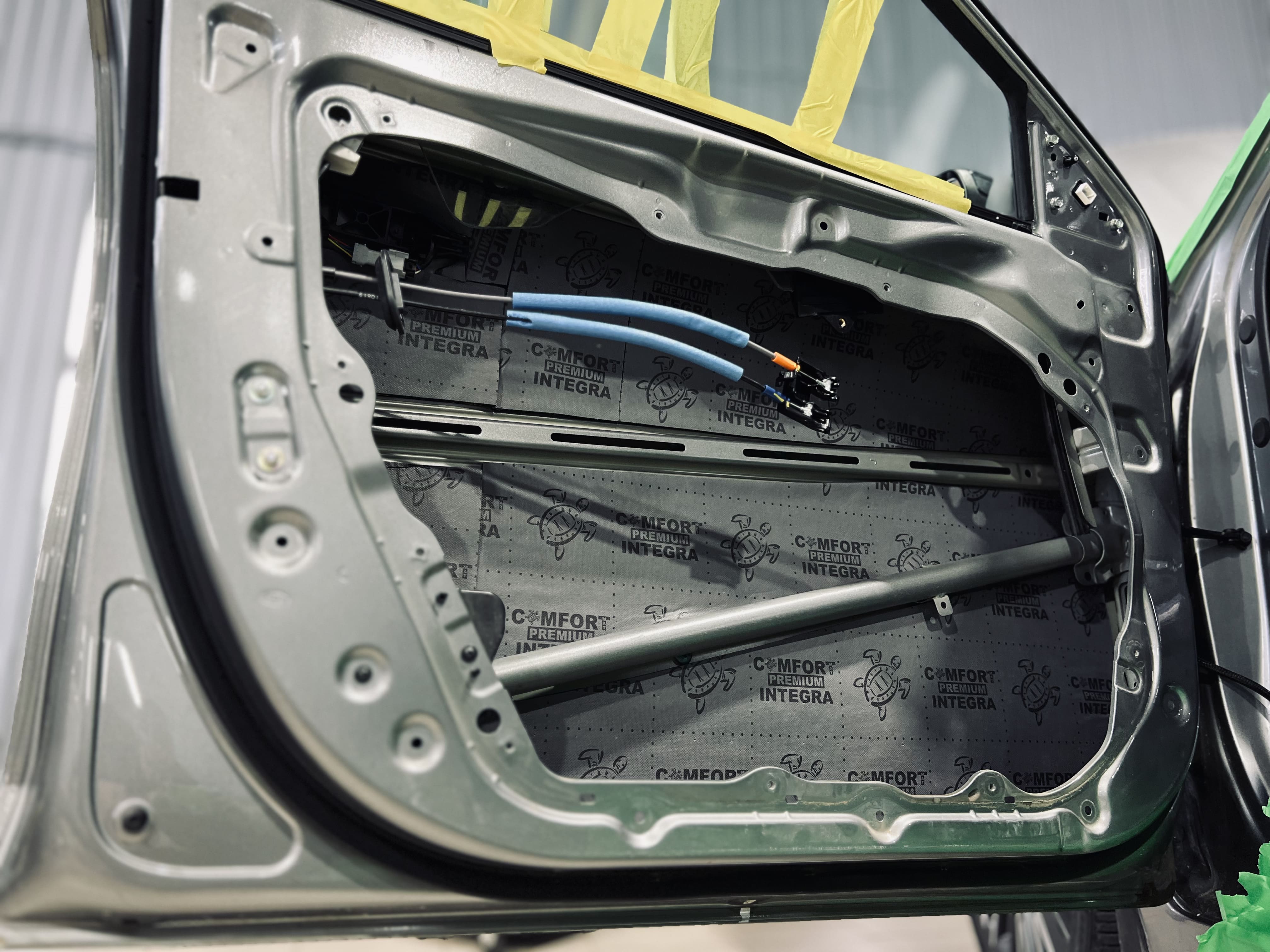 Вторым слоем на двери уложили Шумоизоляция Comfort Mat Integra, поглощающую внешние шумы и добавляющую теплоизоляцию.