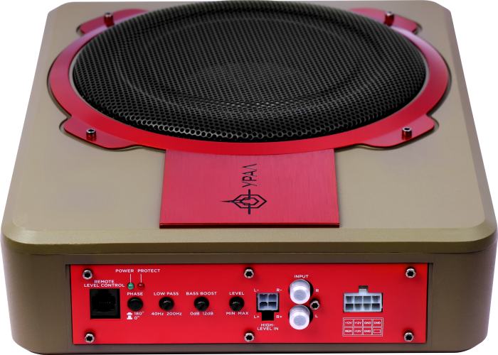 Активный автомобильный саб типоразмером 20 см, предельной мощностью 200 Вт. Разработан для добавления низких частот в штатную акустику. Поставляется в жестком литом корпусе из алюминия, плоским диффузором, зафиксированным с помощью конической траверсы. Большая шайба в центральной части сокращает резонансную частоту. Устройство экономит пространство багажника, так как устанавливается под одно из передних сидений. Отличается незначительным коэффициентом нелинейных искажений (до 0,4%).