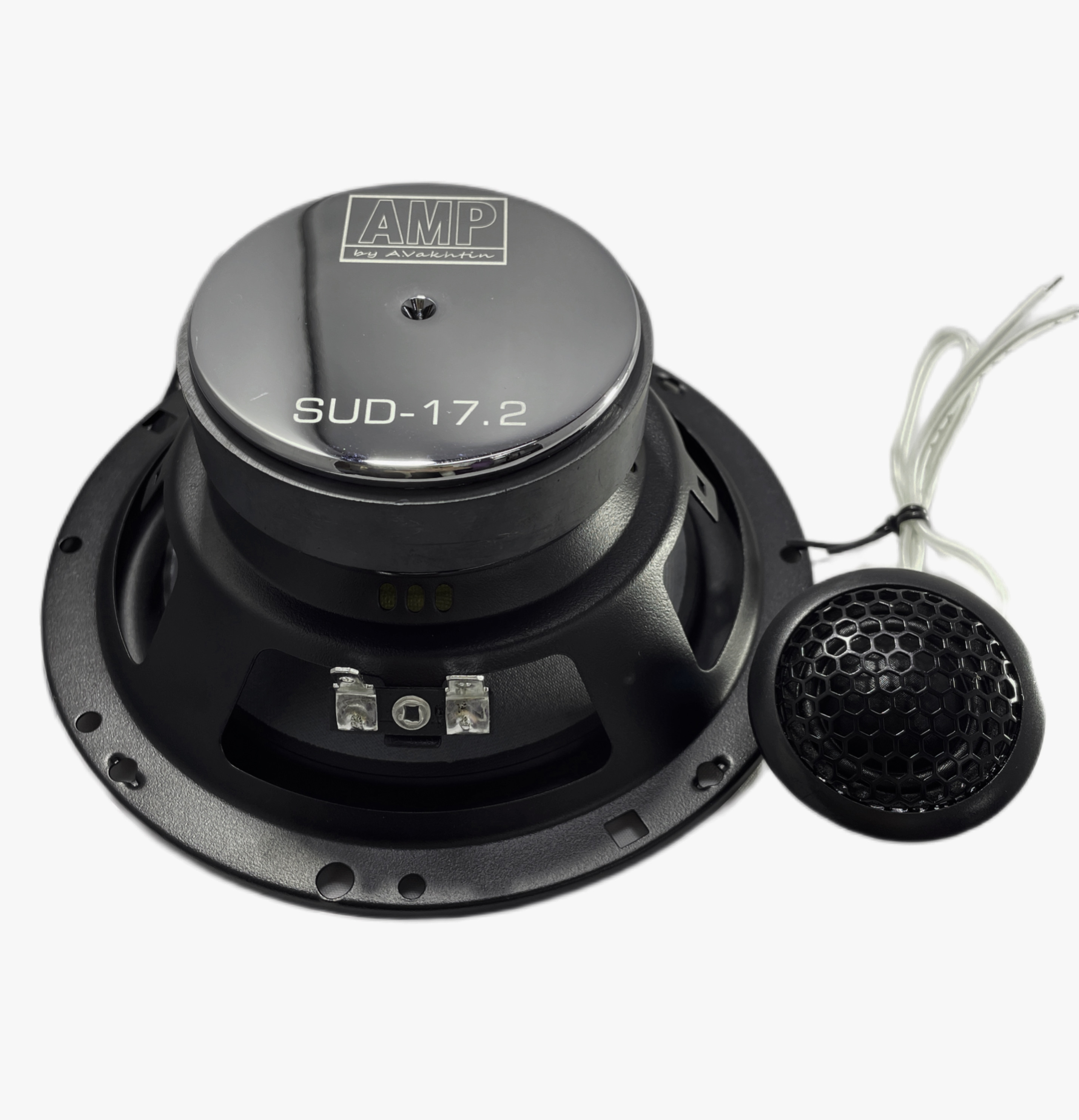 Двухкомпонентные динамики АМР SUВ-17.2 качественно передают звук. Не появляются хрипы и иные искажения. Работают устройства в частотном диапазоне от 50 до 28000 Гц. Чувствительность при этом составляет 91 дБ. Для изготовления ВЧ-диффузора использован шелк, для НЧ-диффузора – арамидный композит. Благодаря используемым материалам весят динамики немного. Максимальная мощность составляет 220 Вт. Если правильно свести полосы, будет получено живое звучание с минимальным окрасом.