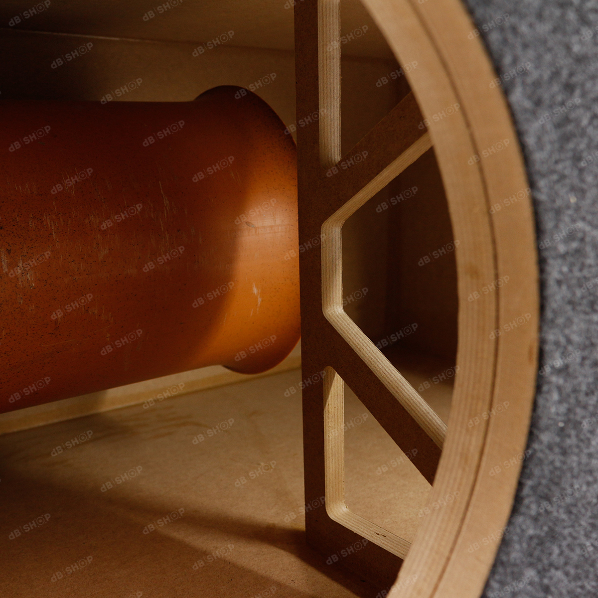Короб для сабвуфера 2x12" ФИ труба (в бок, D200, лого DBShop, мдф)
